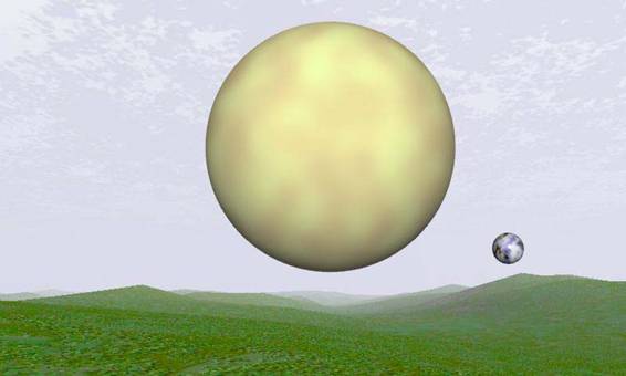○これにより青少年公園からみたバル−ン月、海上の森から見たバル−ン地球は実際の視直径と一致する。