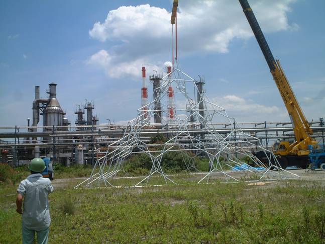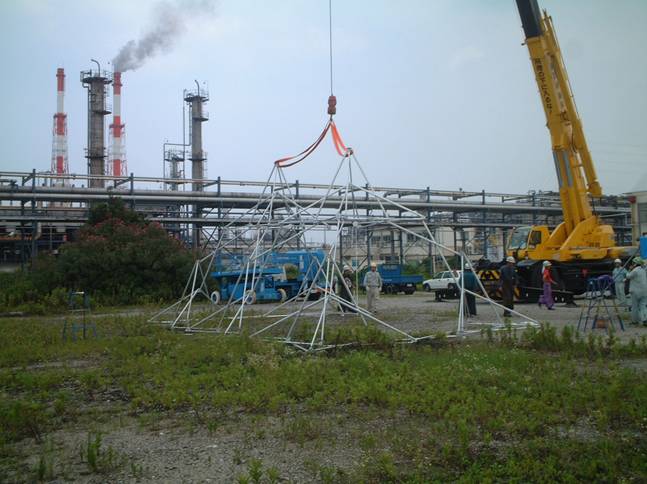 阿竹式展開構造Wピラミッドタイプ 組み立て展開試験 2004.7.16