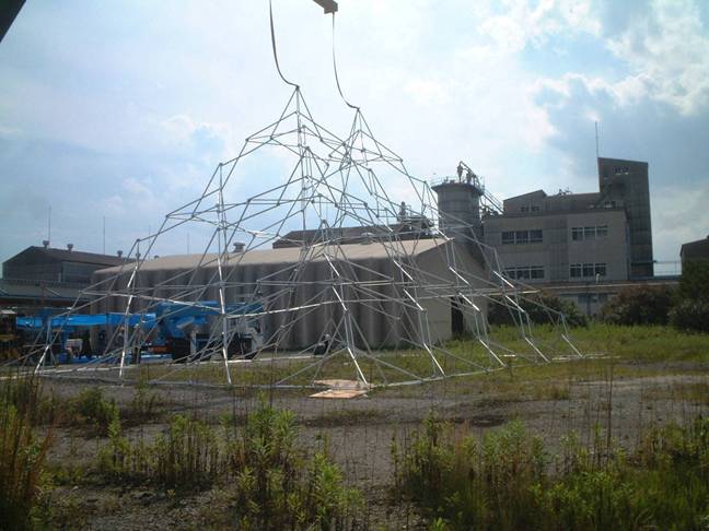 畜産廃棄物処理施設の上屋として計画されましたが 折り畳み時に破損、